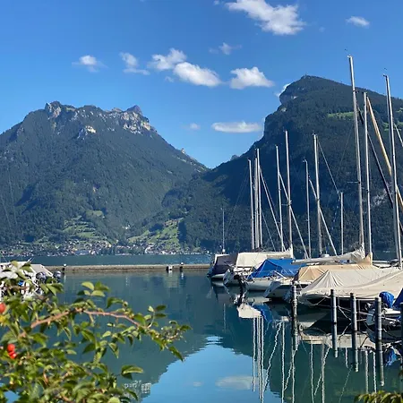 Herrlicher Blick Auf Berge Und See lägenhet garanterar en trevlig vistelse i Faulensee. 1 sovrum, 1 badrum och ett komplett kök finns på detta boende.